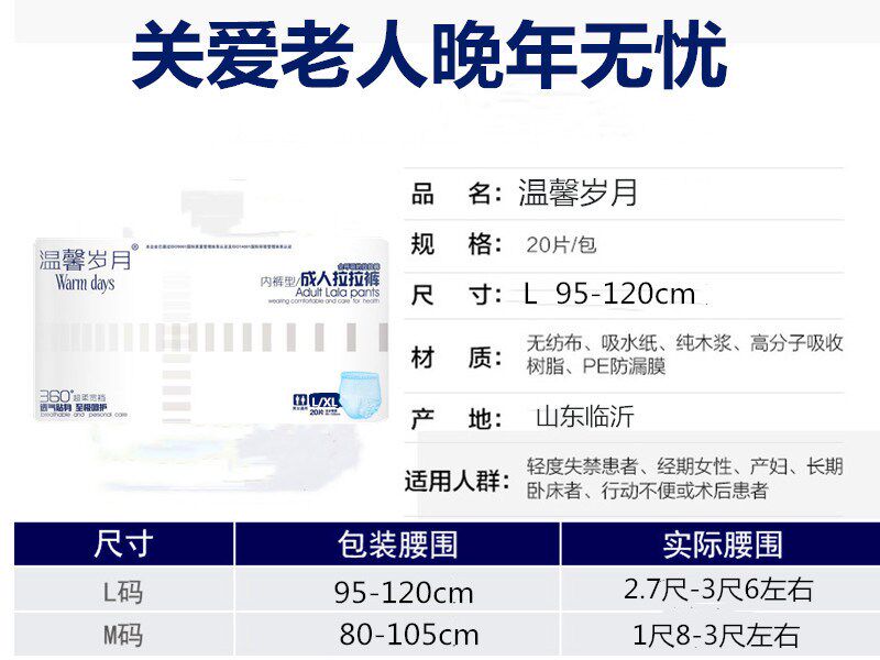 Warm years adult pull-up pants L large diapers for the elderly with pull-up diapers non-wet wash-free underwear