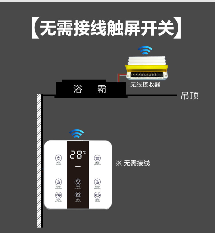 Bath Master Intelligent Touch Screen Wireless Switch Bath Master 5 in 1 5 Open Free Wiring Remote Control Switch Panel Toilet