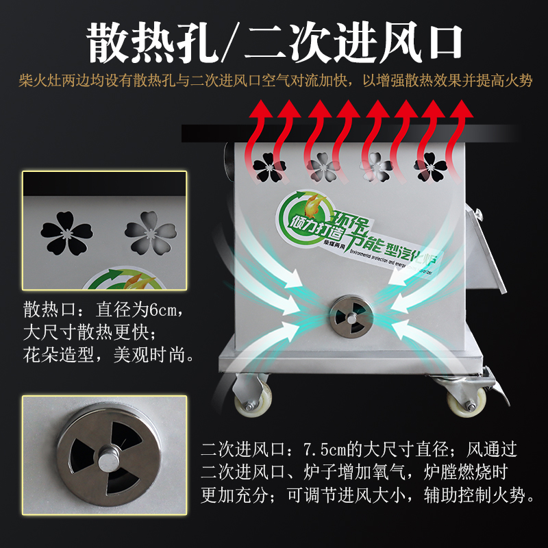 Firewood stove Household firewood burning coal gasifier Rural mobile large pot platform heating furnace Energy saving Indoor and outdoor farming