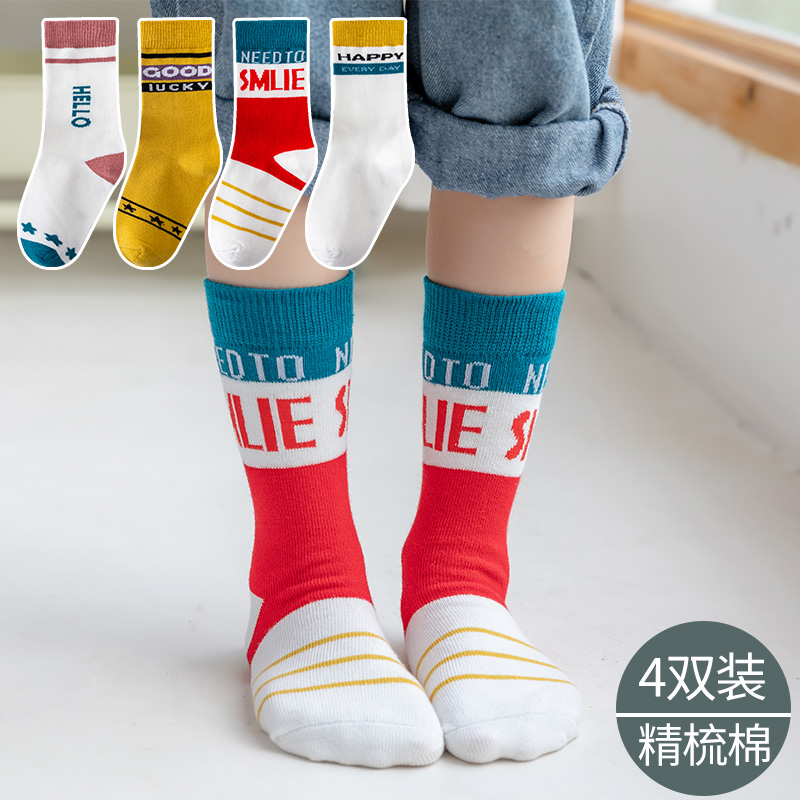 Children's stockings in Boys socks pure cotton spring and autumn girls mid-summer girls in childhood socks