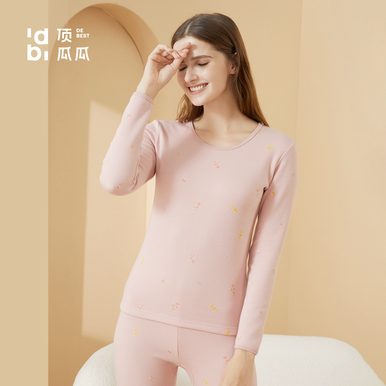 Top piper women's thermal underwear pure cotton plus velvet thickened autumn clothes and long johns top melon melon cotton high collar thermal underwear