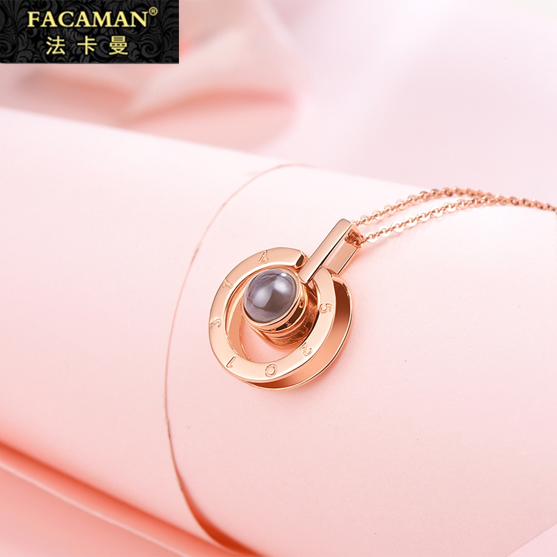 Fakaman necklace female 100 languages I love you projection 18k rose gold collarbone chain pendant vibrato with the same paragraph
