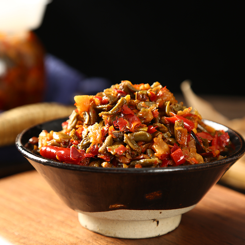 Hunan Zhengzong Chongxiang Spicy Old Tan Sour Bean Corner Sauce cooked food ready-to-eat Cowpea Corner Salty Vegetable to Taste The Rice Dish Bottled