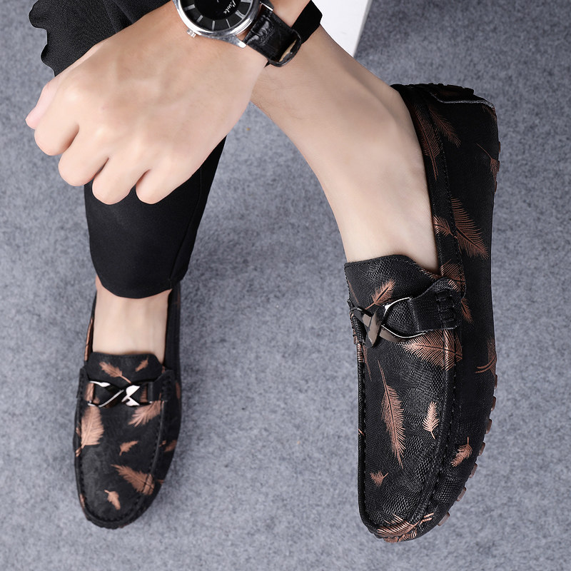Peas shoes men's 2021 new one-step hair stylist trend white casual loafers soft-soled leather shoes