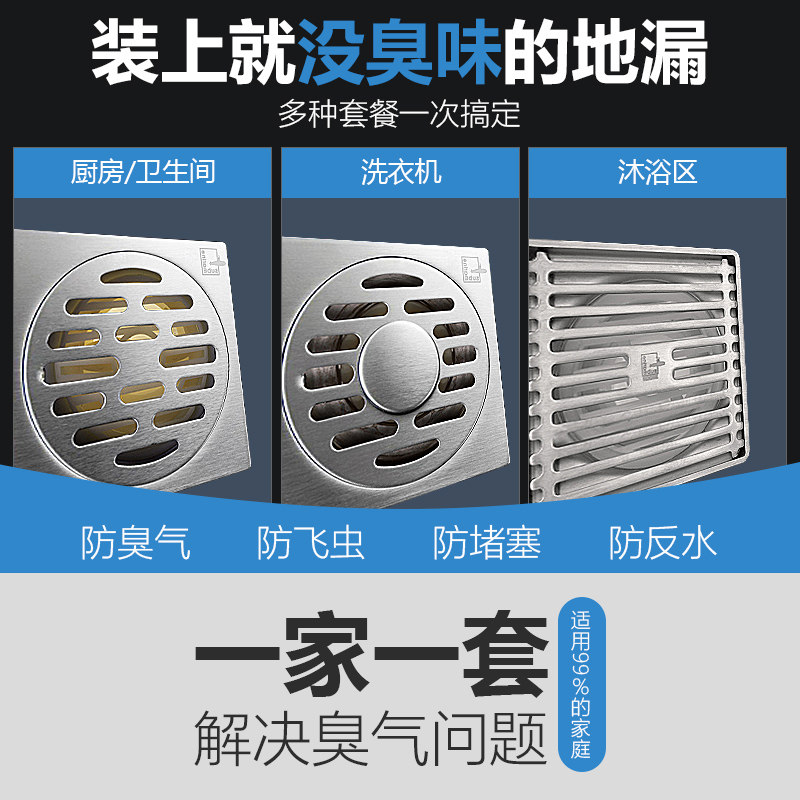 Submarine 304 stainless steel deodorant floor drain thickened large-displacement sewer washing machine powder room home