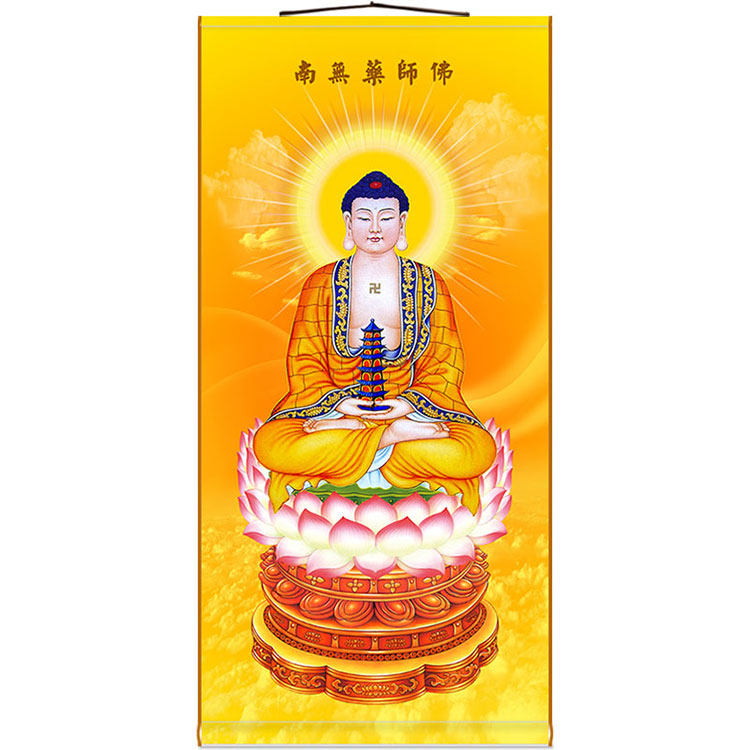 Pharmacist glazed light such as coming to Buddha portrait Oriental net glazed world teaching main scroll painting full screen full screen hanging painting