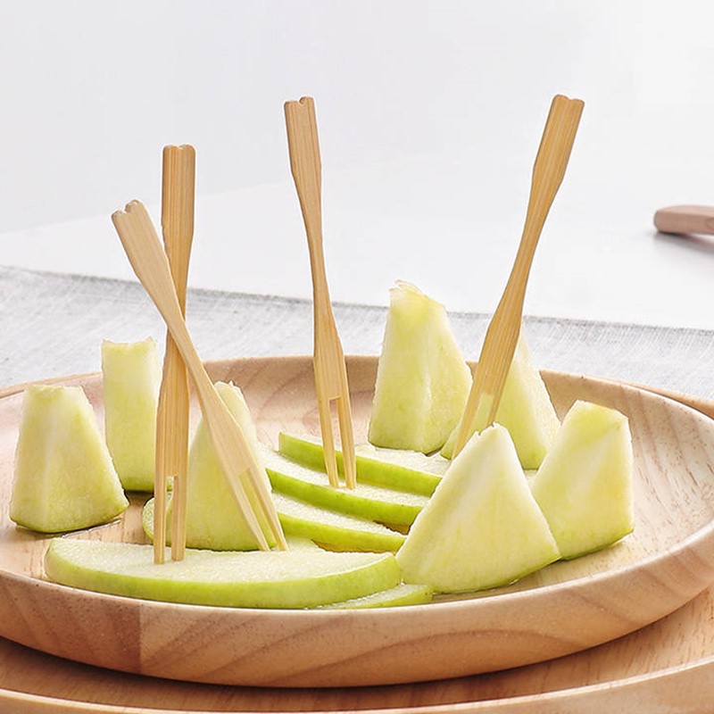 Disposable fruit fork vegetable cake fork bar ktv fruit plate fork natural bamboo fork sign creative 100 pieces