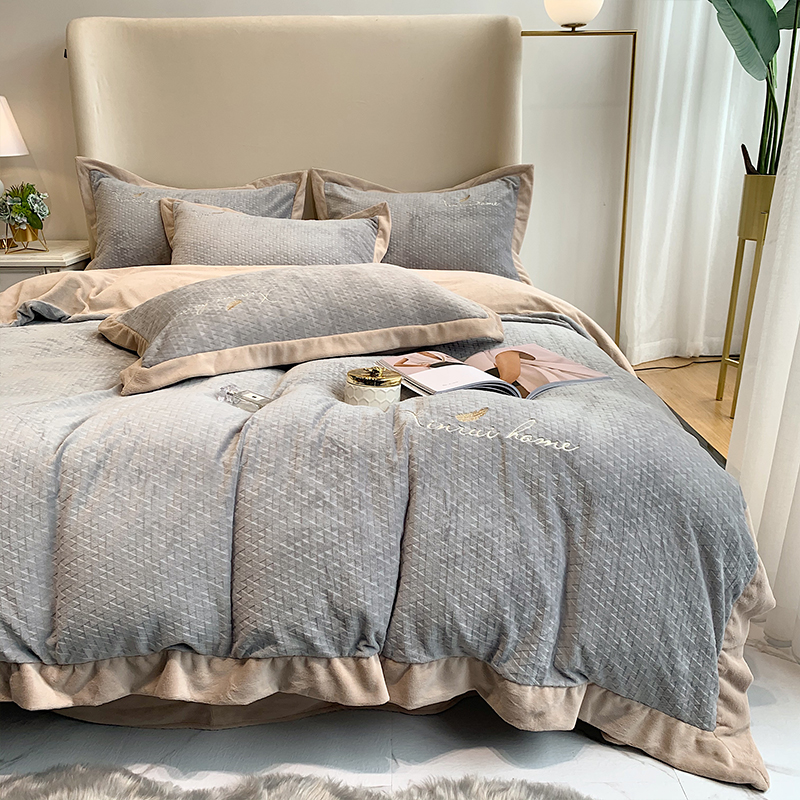 Autumn and winter milk velvet thickened four-piece Nordic light luxury carved double-sided velvet plus velvet winter coral velvet bedding