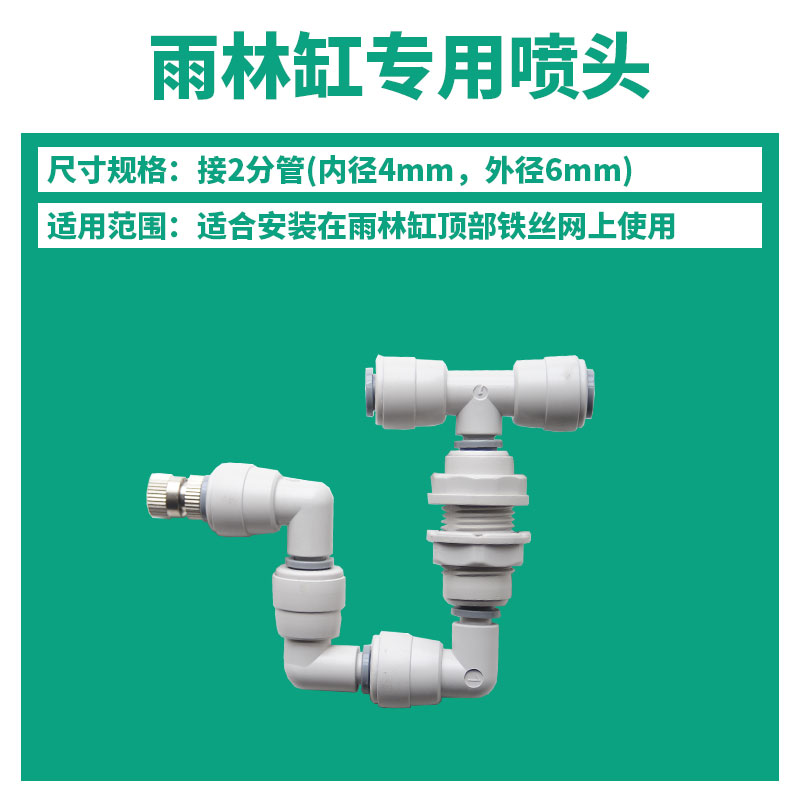 Rainforest cylinder special sprinkler 1 atomization nozzle 1 adjustable copper nozzle 1 gimbal bracket set 1 set of fast tee 1 tie 10 power adapter a usb cable a plug a 47 black pipe 5 meters filter sand head 1