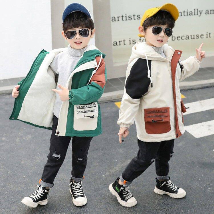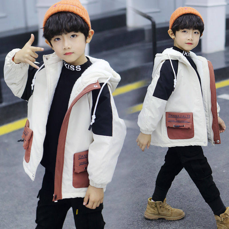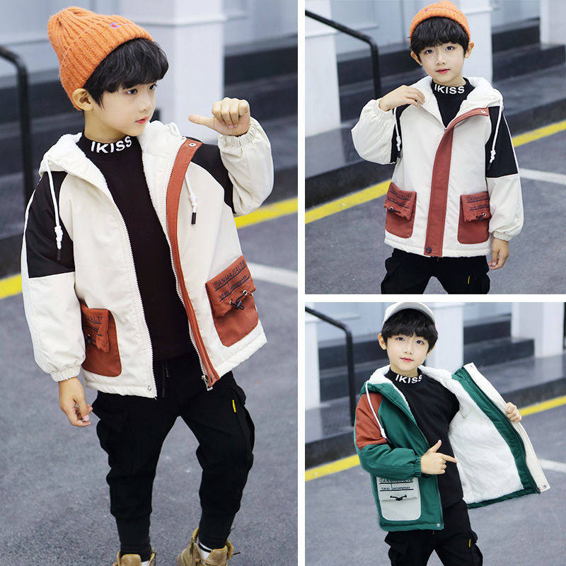 Boys jacket autumn and winter plus velvet thickening spring and autumn style Western style cotton coat children's middle-aged children's windbreaker tide children's pie to overcome
