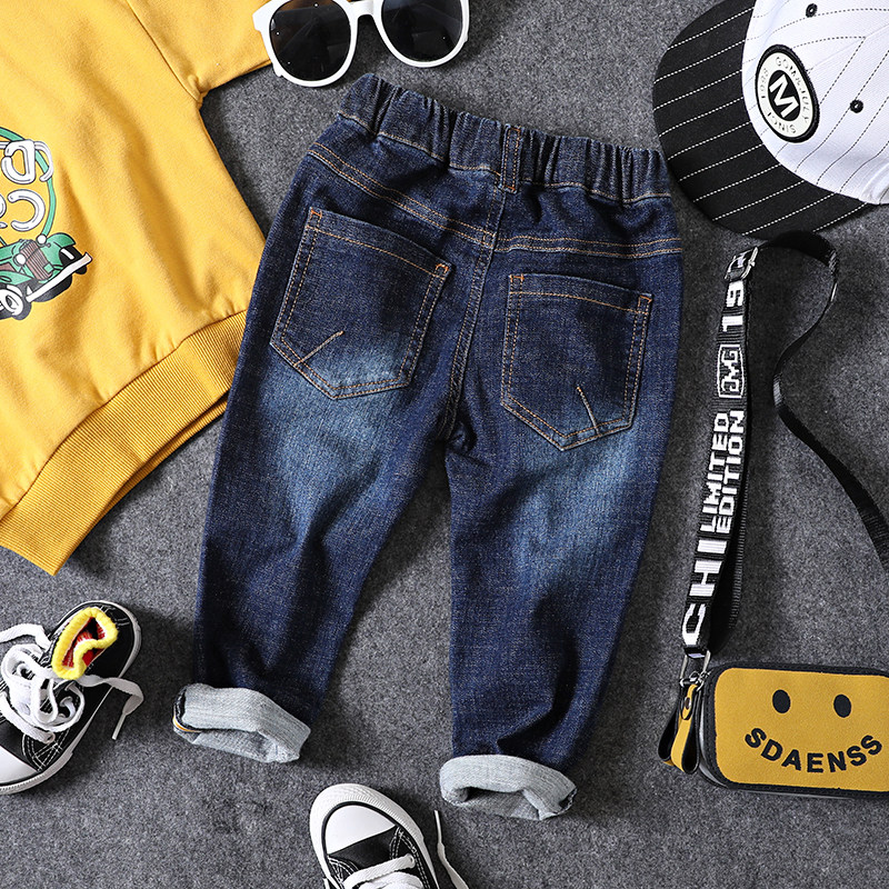 Boys cotton elastic jeans spring and autumn models autumn new products children's baby letter embroidery trousers baby all-match pants