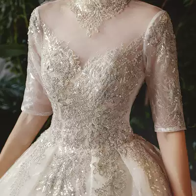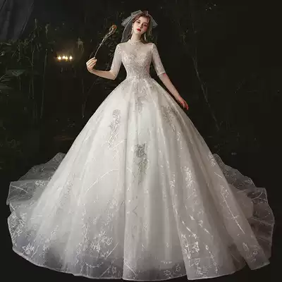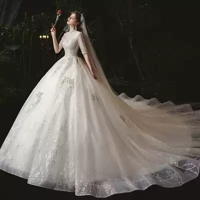 French main wedding dress 2021 new bride temperament tailing Mori starry sky light pregnant woman Luxury Large size retro autumn and winter