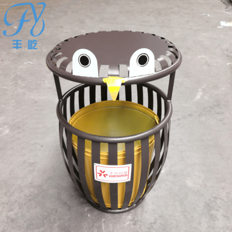 Garbage bin outdoor suitcase outdoor park creative crowd design with lid round cylinder commercial sanitation bin