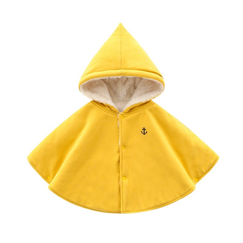 Boys and girls baby windproof cloak infant autumn and winter plus velvet thickened children's cloak Korean version of the trendy fan hooded out clothes