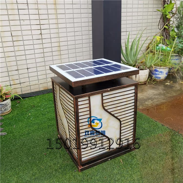 Solar outdoor column head lamp ancient bronze color doing old yard Falling Column lamp Four-in-house small Palace lamp Villa Wall Light Box
