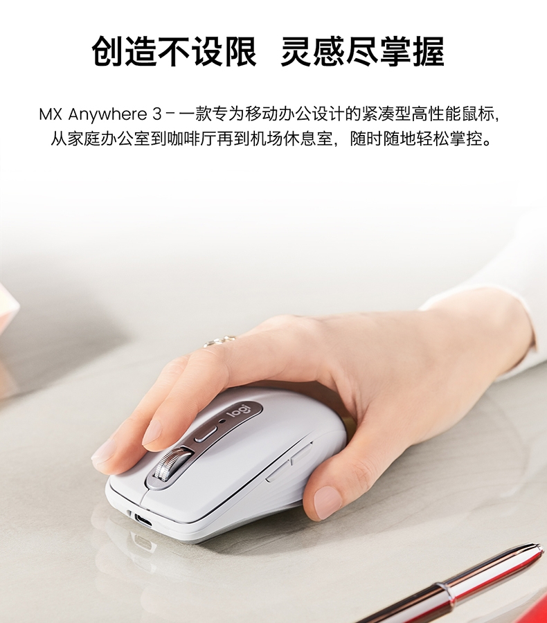 (Official Flagship Store) Rotech MX Anywhere3 Wireless Bluetooth Charging Portable High-end Sliding Mouse Intelligent Disease Speed Roller Pink Travel Game Office Notebook Desktop