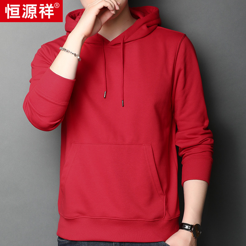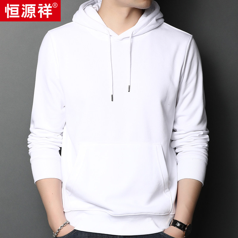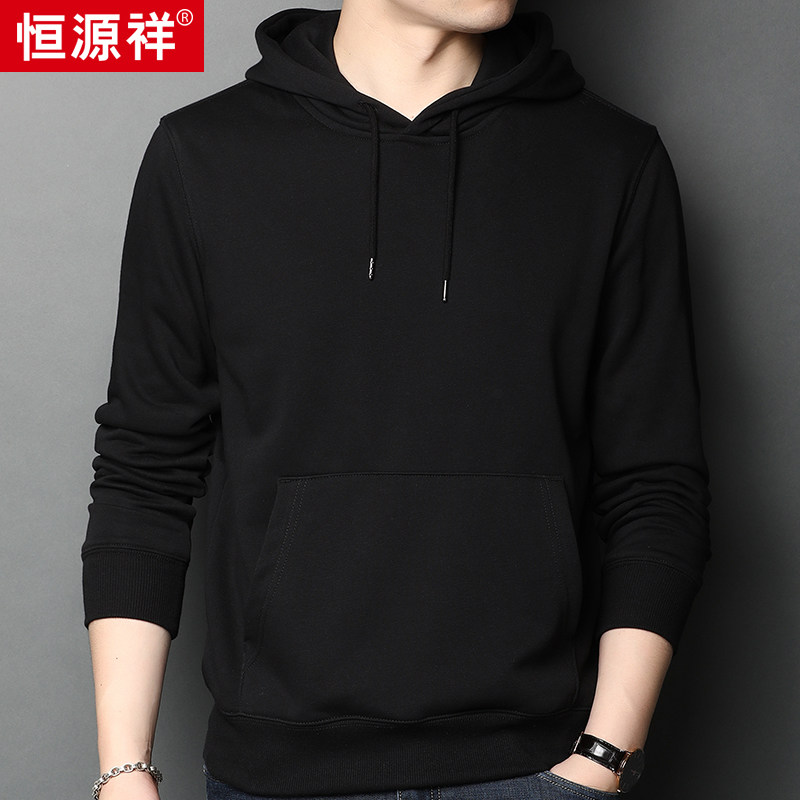 Hengyuanxiang autumn new men's long-sleeved sweater jacket pure cotton hooded loose pullover casual solid color top tide