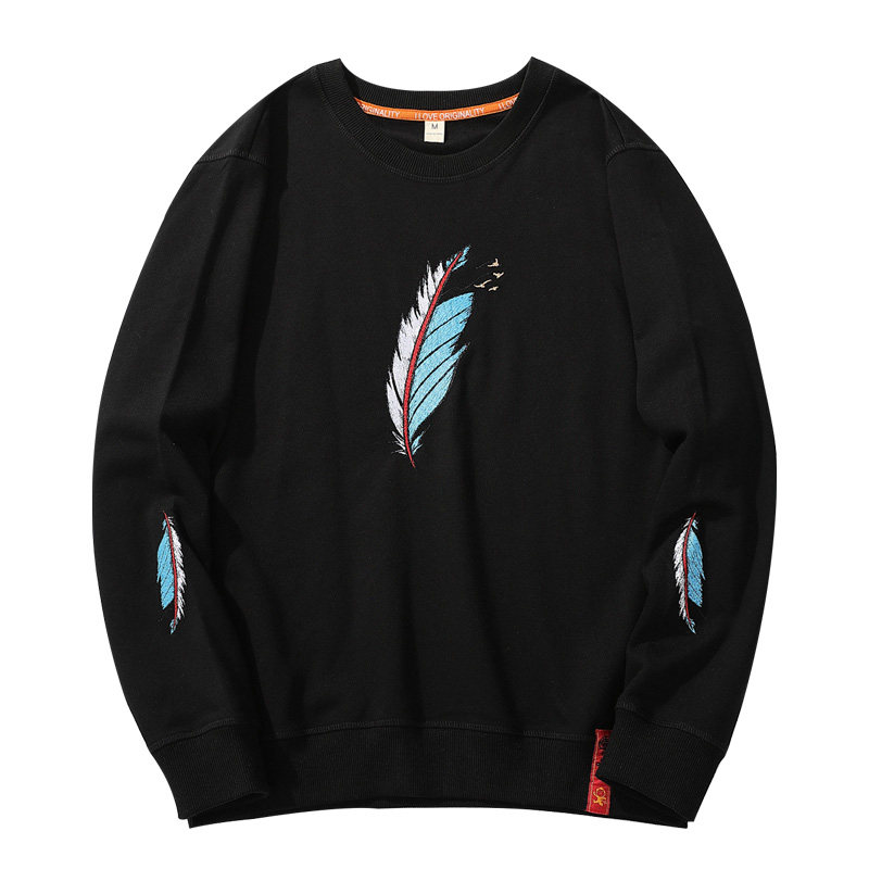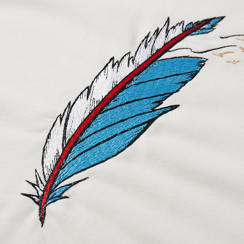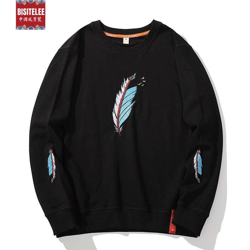 Large size code men's clothing fats plus fattening up feather embroidery long sleeves thick cotton T men's spring autumn season thin clothes jacket country tide