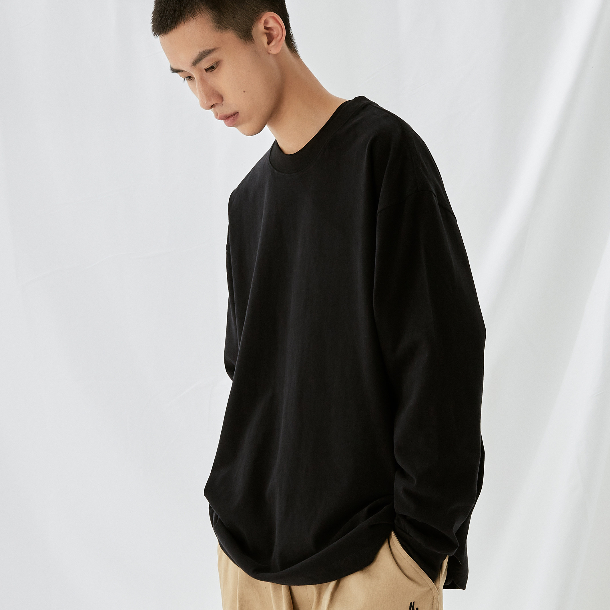 NORYBRAND Heavy Fleece Comfortable 260G Round Neck Long Sleeve Base T-shirt Xinjiang Cotton Loose and Versatile for Men and Women