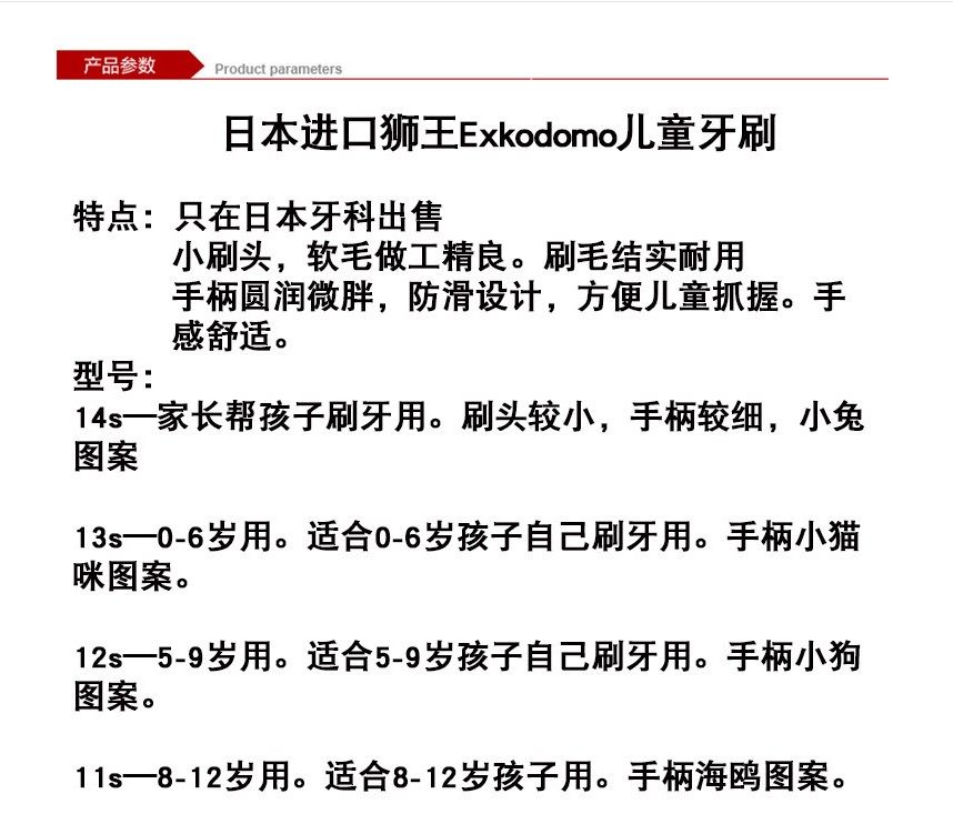 The specification of the toothbrush: