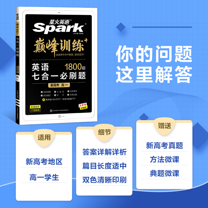 2022 New high school English seven-in-one must-read questions Spark English peak training high school English book lesson package cloze and reading comprehension seven-choice five grammar fill-in-the-blank application essay summary writing reading follow-up writing new college entrance examination