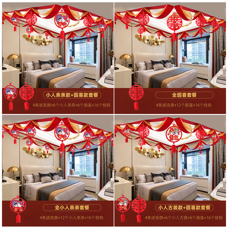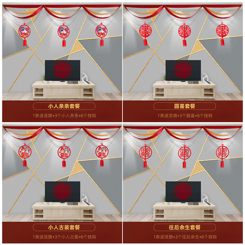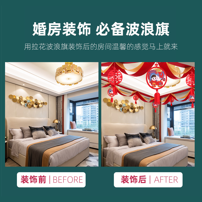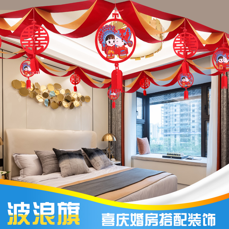 Wedding Living Room Suit Wedding House Decoration New House Arrangement Supplies Happy Words Lablossom Wedding Bedroom Scene Wave Banner-Taobao
