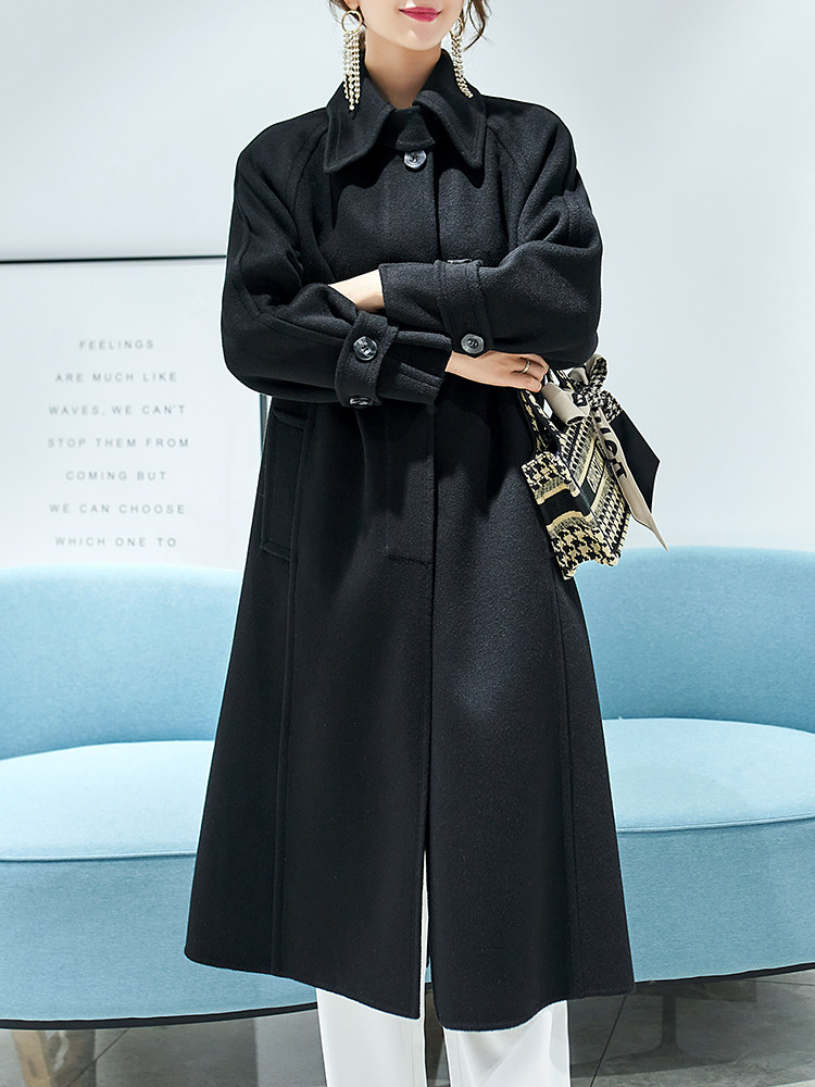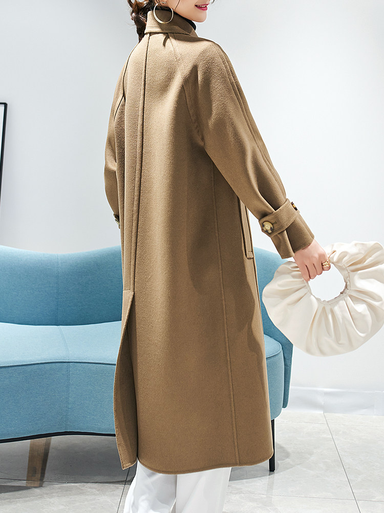 Double-sided cashmere coat women's mid-length 2022 autumn new high-end Hepburn loose cloak woolen coat