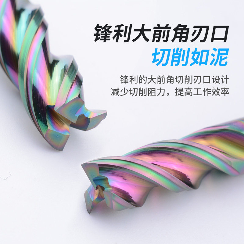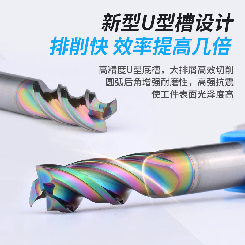 Tungsten steel aluminum end mill U-groove high-efficiency colorful DLC coated flat-bottom end mill aluminum special large cutting