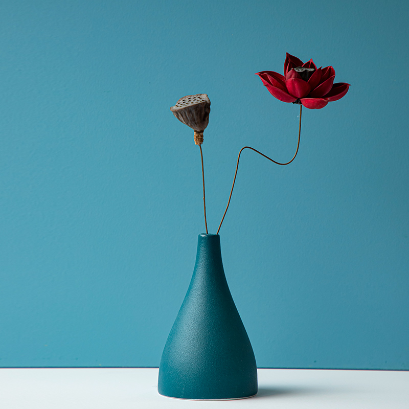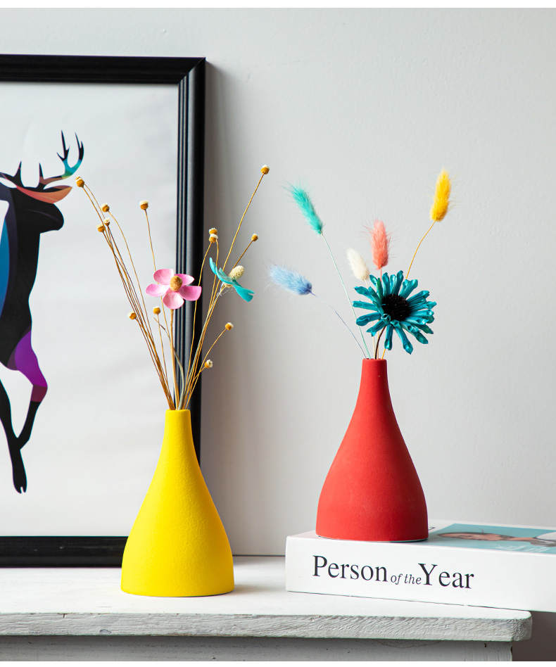 4 sets of dried flowers (suit) 2 sets of dried flowers (suit) blue ceramic vases dried flower red ceramic vases dried flower yellow ceramic vases dried flowers ink
