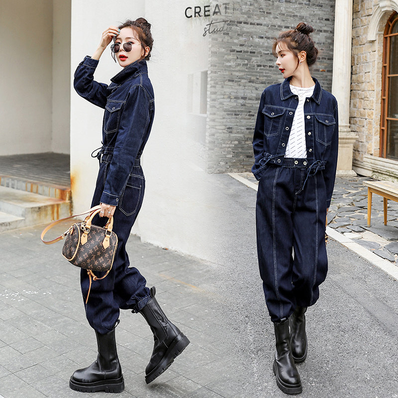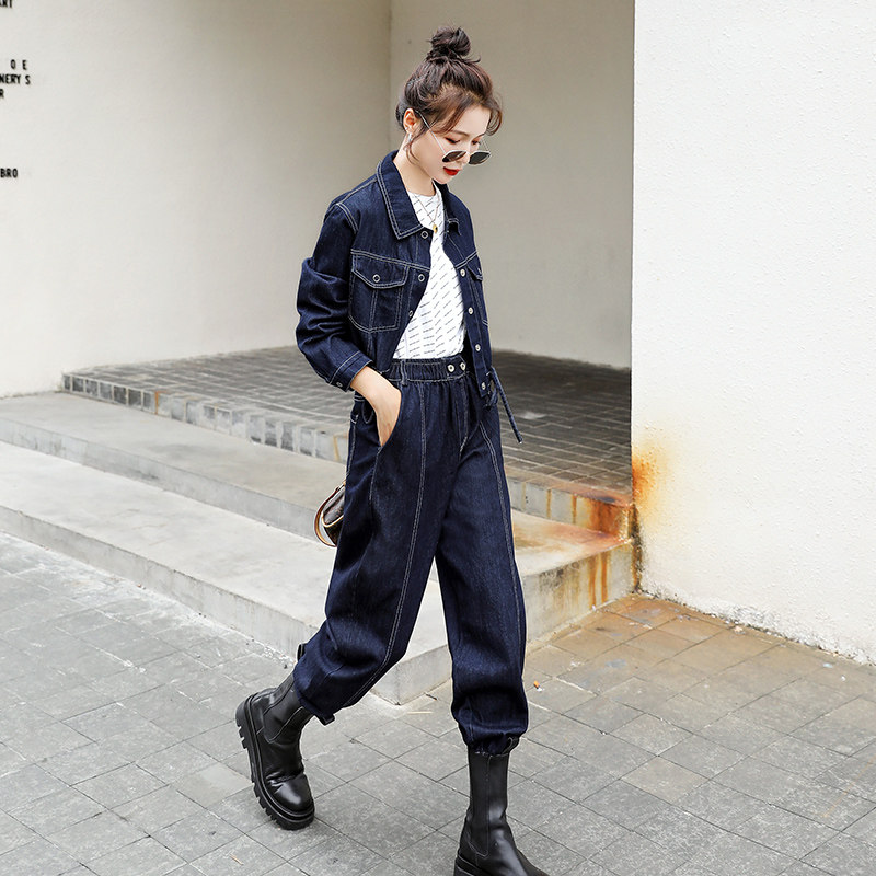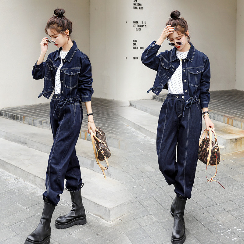 Early Spring Trend Foreign Air Display Slim Jeans Tooling Suit 2024 New Fashion Casual Pop Senior Two Sets Women-Taobao