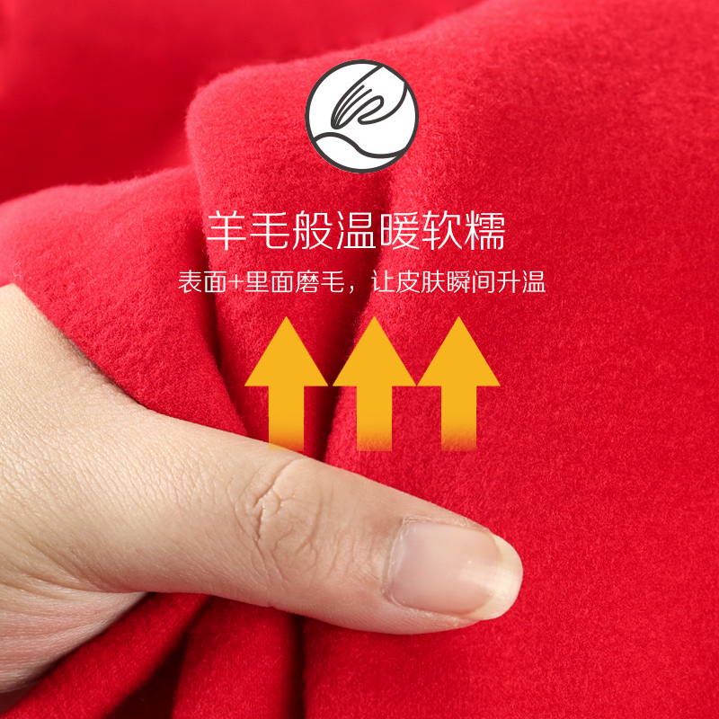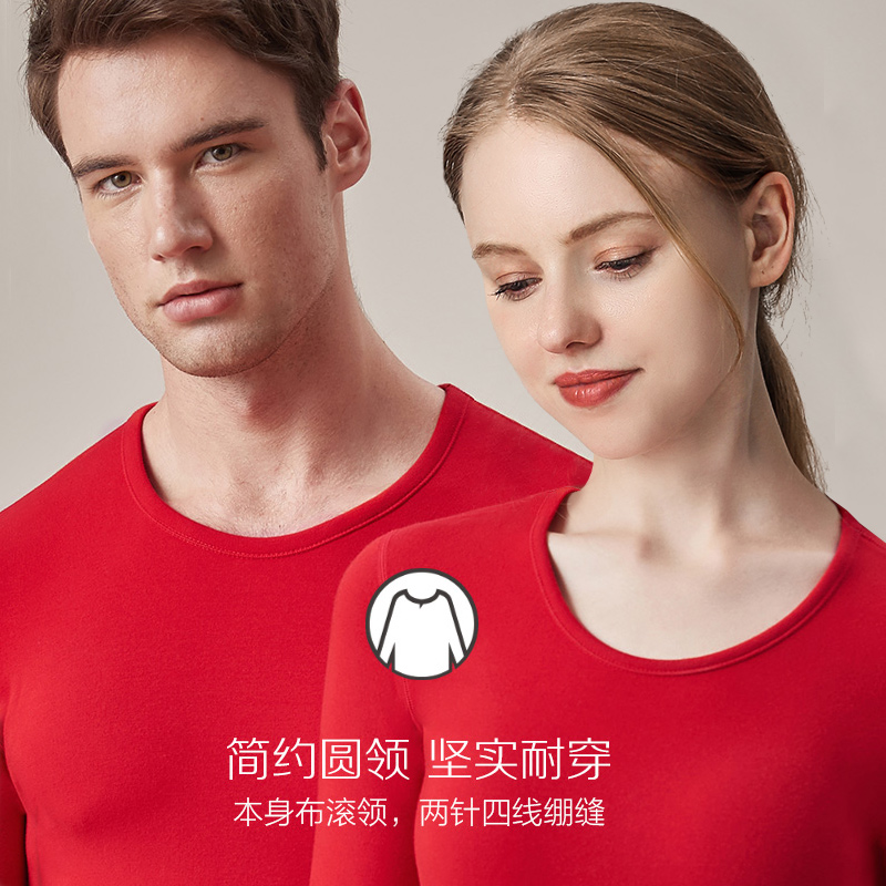 Red bean velvet milled thickened year of life underwear suit Autumn clothes Autumn pants Women's underwear Round neck base shirt Cotton sweater