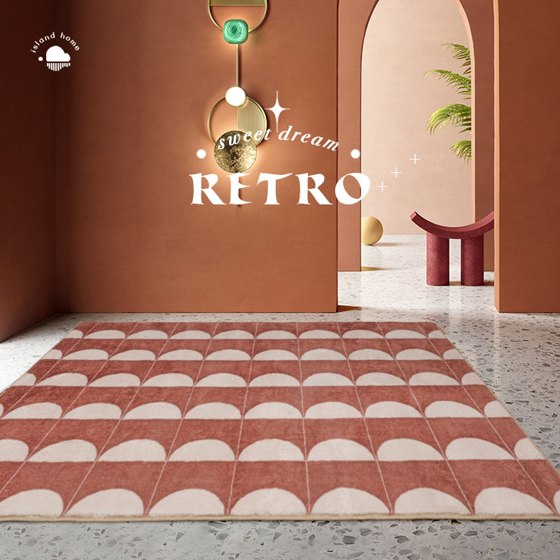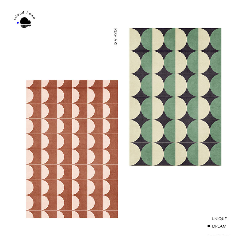 Green French retro carpet living room art geometric bedroom bedside Nordic ins style checkerboard lattice floor mat
