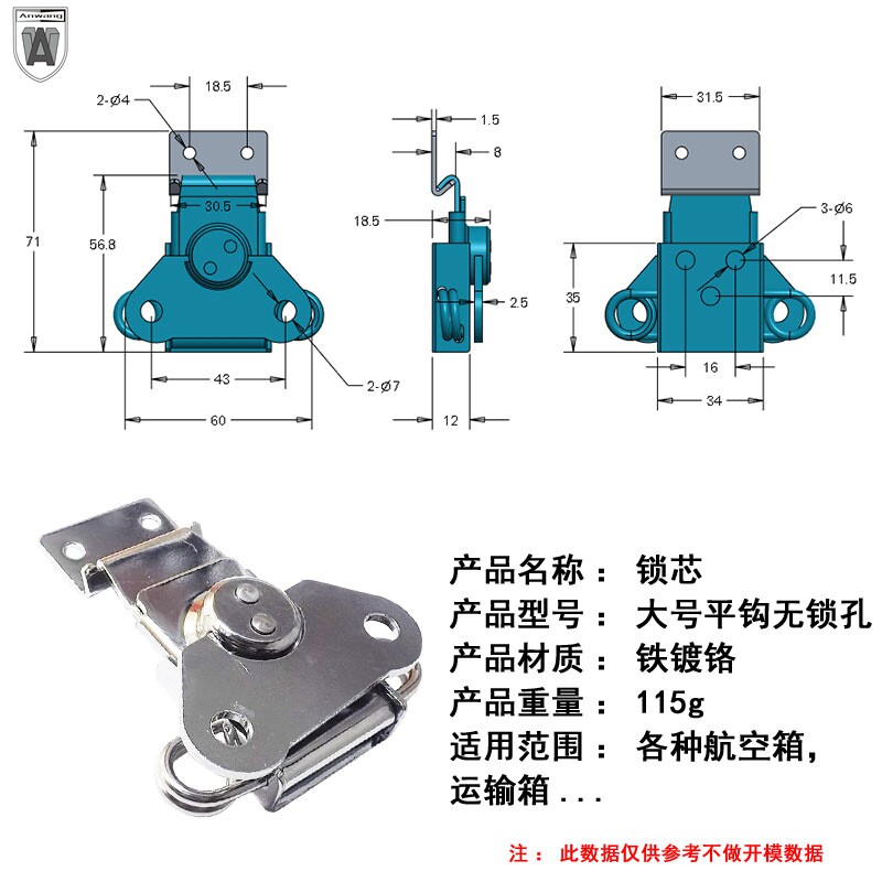 Anwang large lock core flat hook No keyhole buckle lock Wooden box lock Nose lock Padlock Camera obscura bag accessories