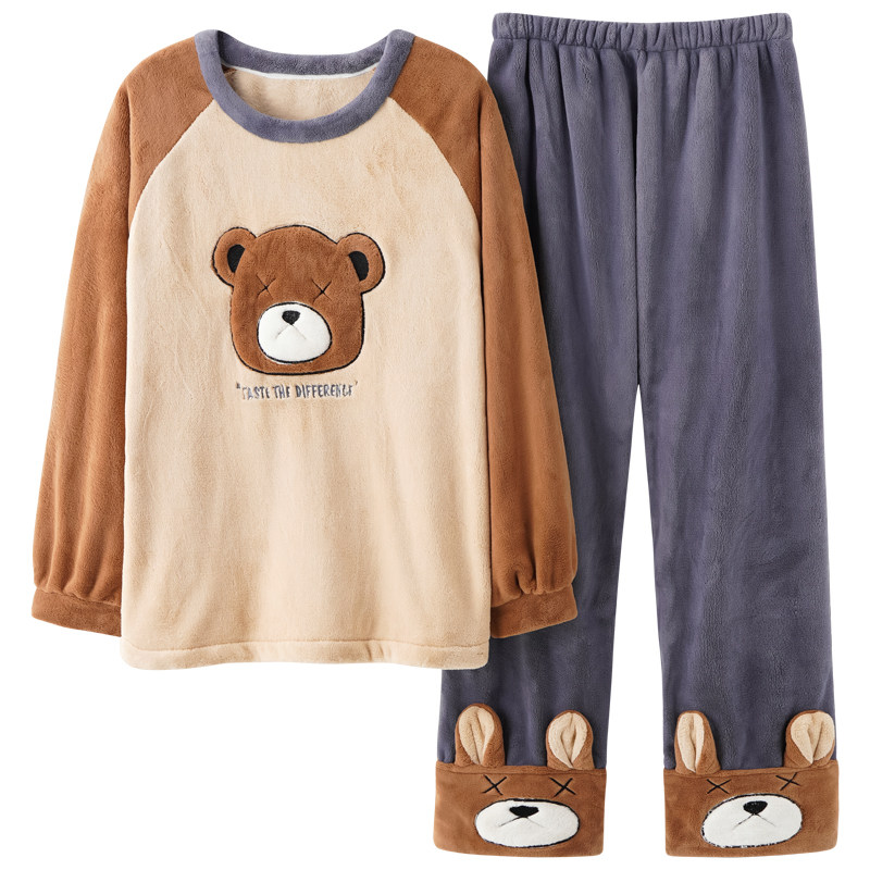 South Pole Pyjamas Sleeping Lady Autumn Winter Coral Suede Thickening Cute Warm Flannel Suede Home Clothing Spring Autumn Extractable Suit