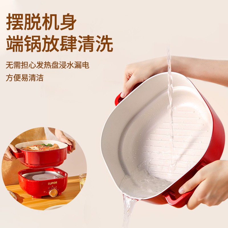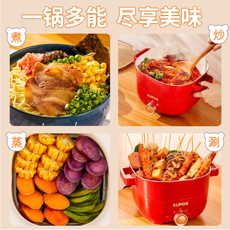 Supoir electric fire hotpot Home Dormitory Students Two-type Multi-functional Cooking Frying and frying Barbecue Small Integrated Pan