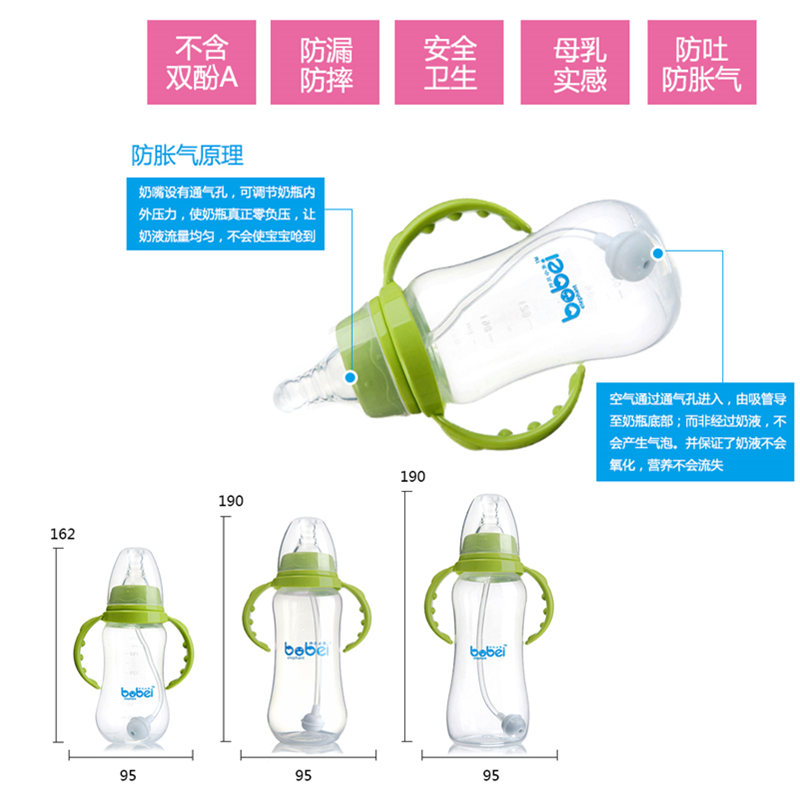 Bombay Newborn Baby Standard Caliber PP Milk Bottle Small Mouth Warp Plastic Bottle Resistant And Anti-Flatulled Air With Straw Handle