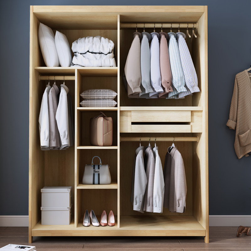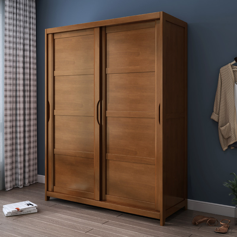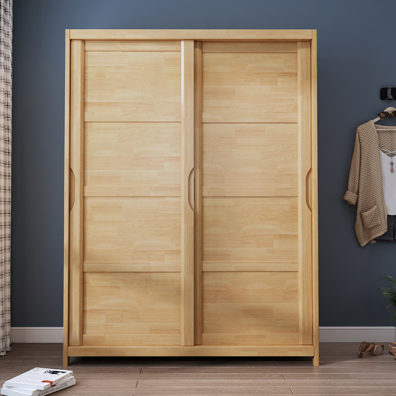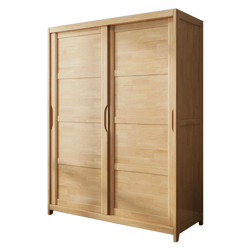Nordic style all solid wood wardrobe home bedroom modern minimalist small apartment sliding door dormitory rental wardrobe
