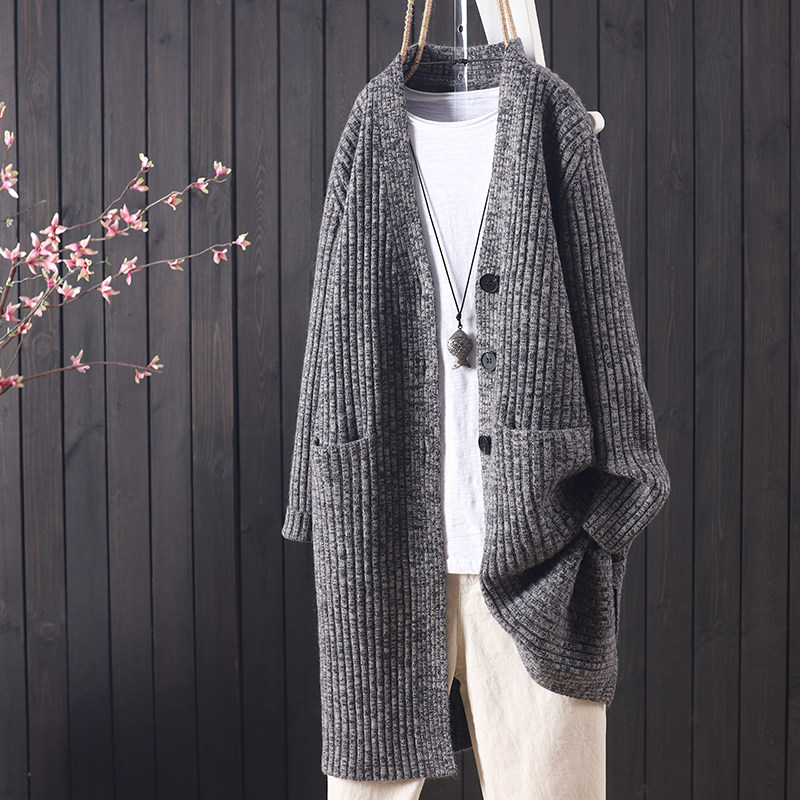 Souxu spring and autumn new mid-length mixed-color sweater cardigan women's all-match literary loose Korean sweater outer match
