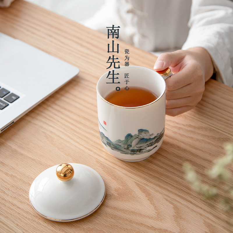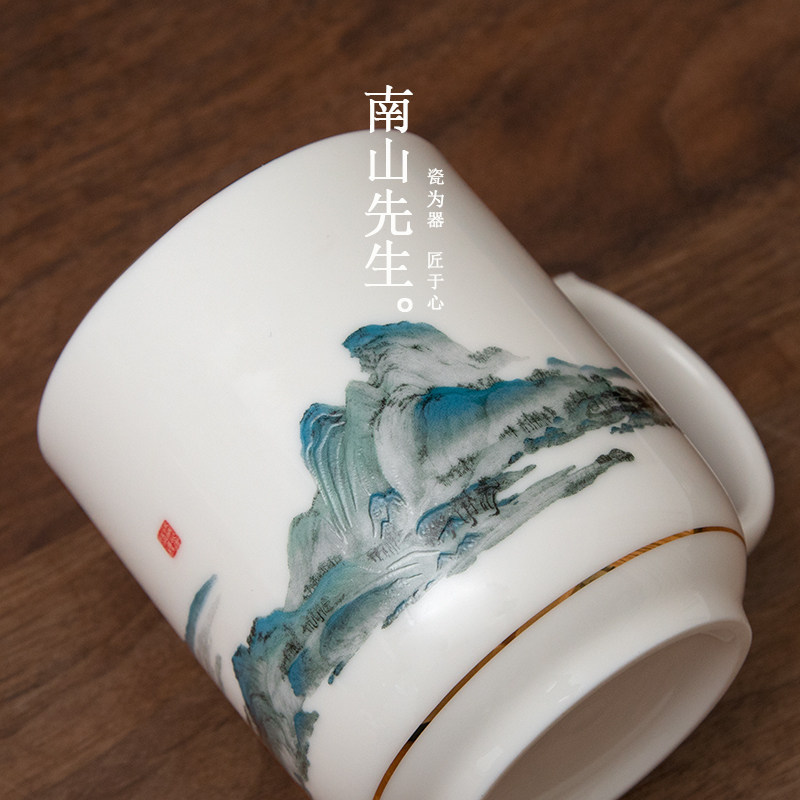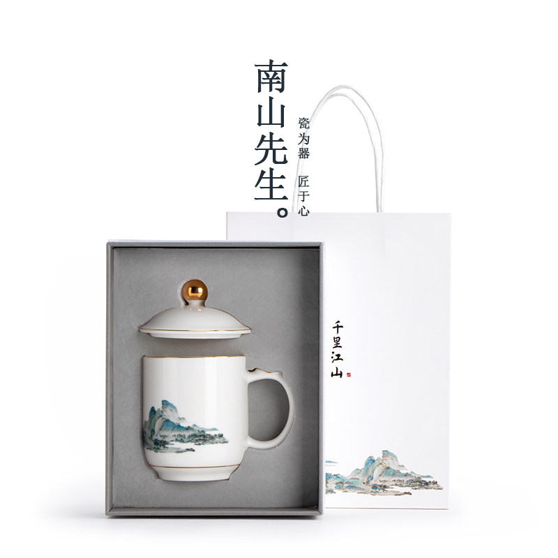 Mr. Nanshan Qianli Jiangshan Conference Water Cup Office Mug Ceramic Drinking Cup Simple Personal Single Cup Gift