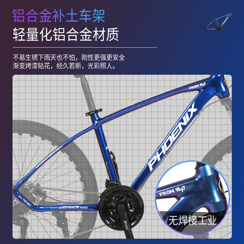 Phoenix dedicated bike new color change frame 27 speed oil disc men and women adult variable speed off-road mountain bike bike