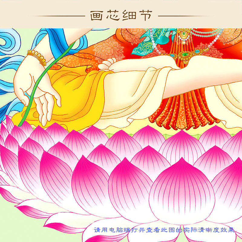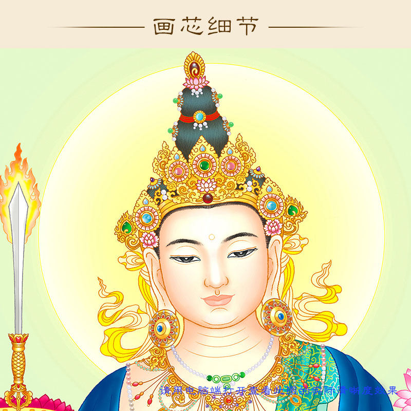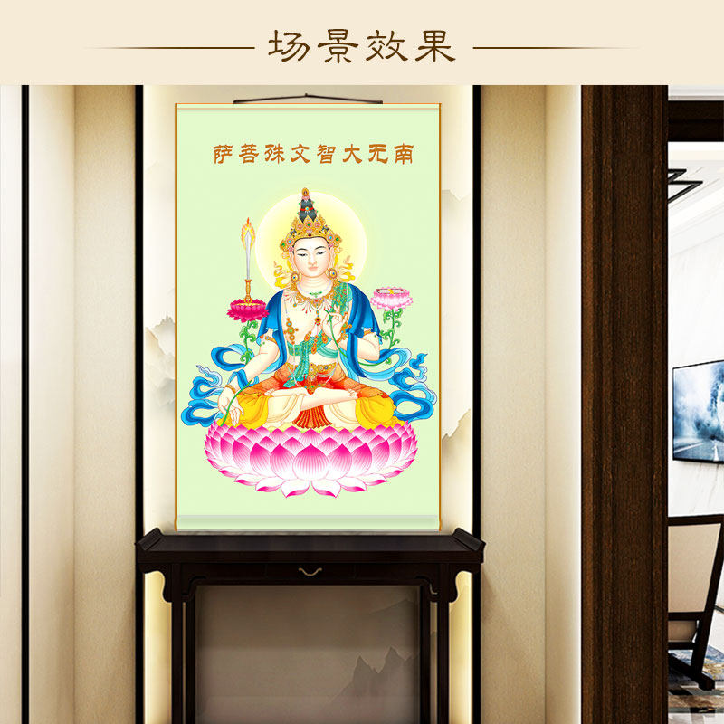 High definition Wenshu Bodhisattva portrait silk cloth material Buddha painting Buddha paintings Buddhist shrine Home All-screen full screen scroll hanging painting