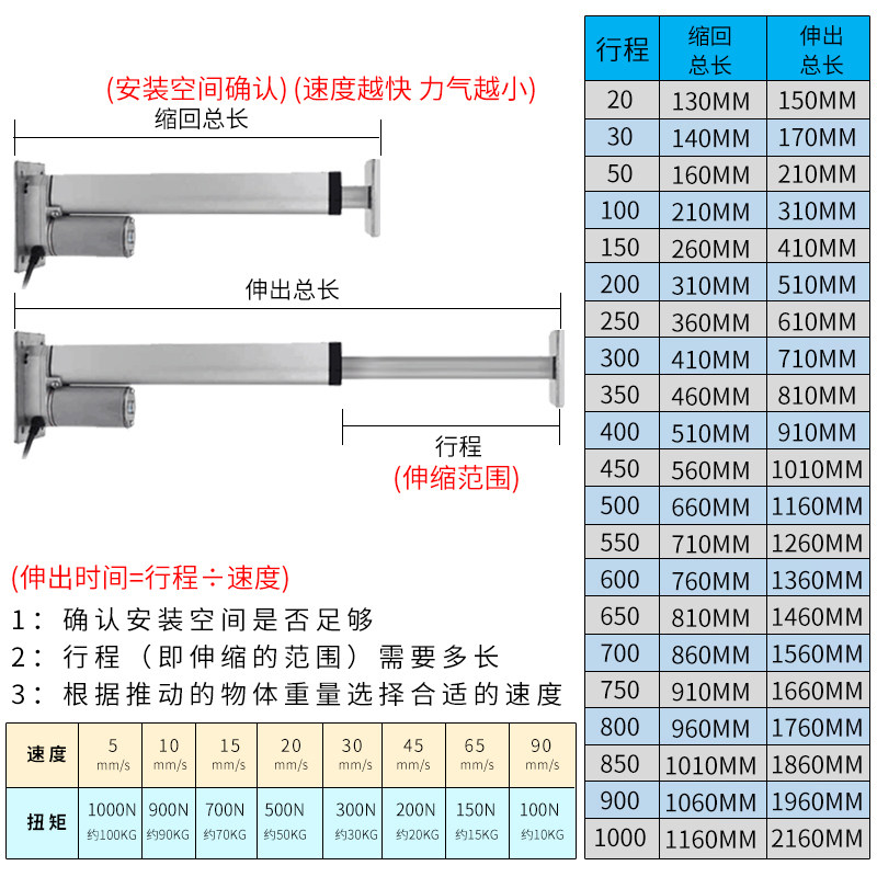 Push rod motor stroke 20MM (mm push rod motor stroke 30MM (mm push rod motor stroke 50MM (mm push rod motor stroke 100MM (mm push rod motor stroke 1