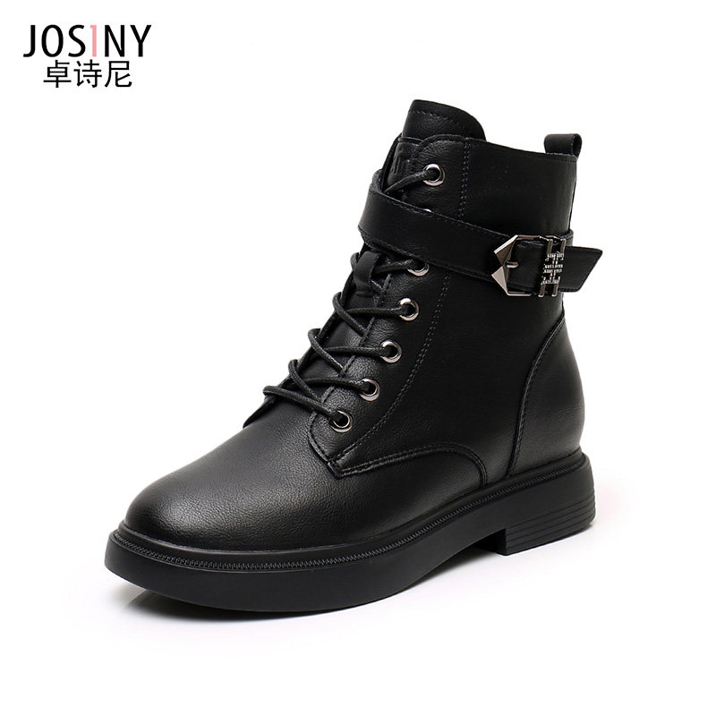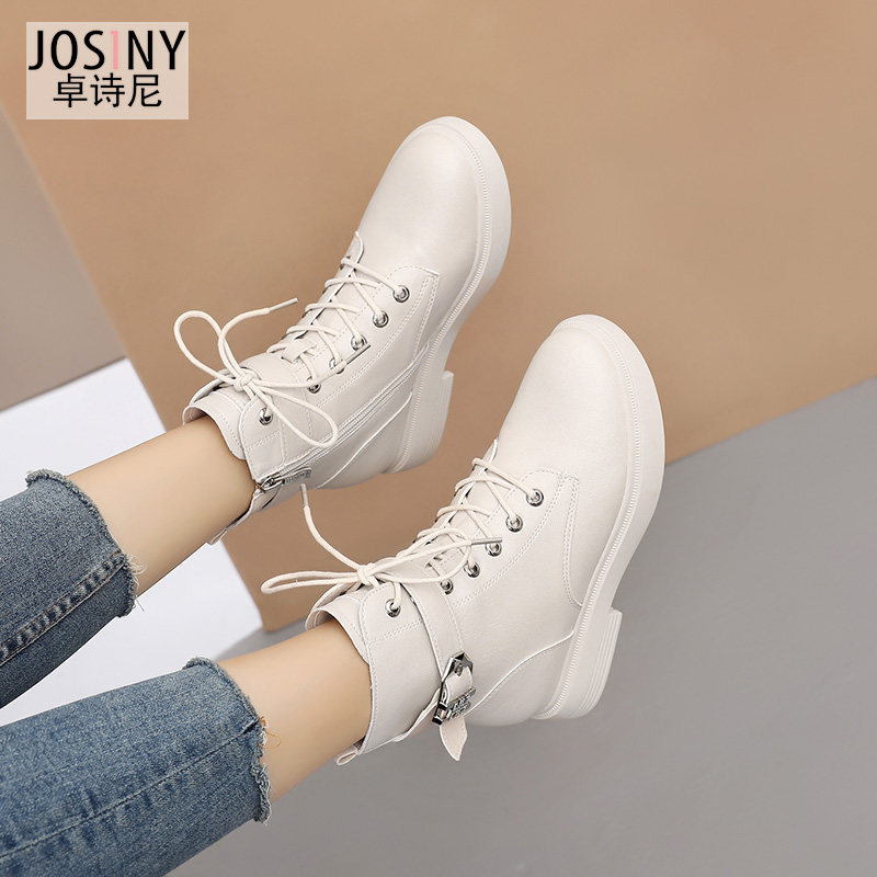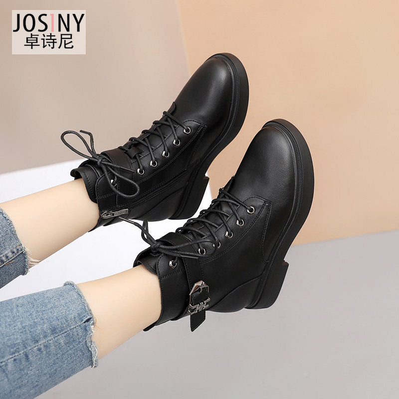 Zhuoshini 2021 winter new Martin boots women's British wind thick bottom side zipper wild middle heel boots women plus velvet