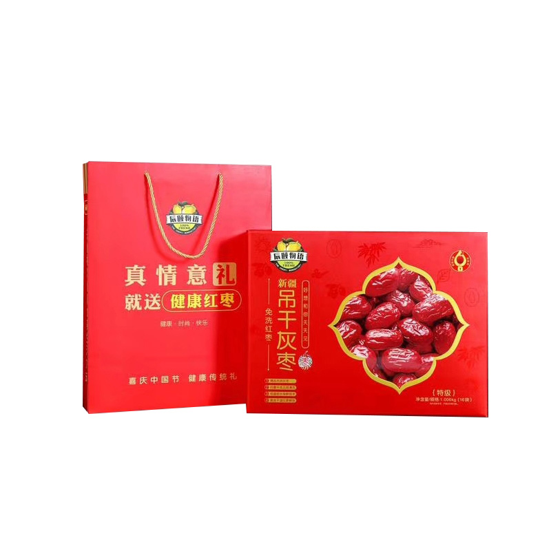 Two bags (500gX2 bags) Red dates gift box (16 small bags, 1000g in total) Hanging dried gray dates with ash 5 catties