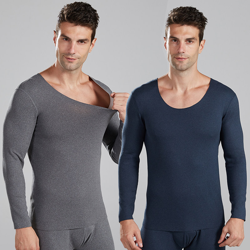 2022 autumn and winter men's seamless double-sided brushed heating jacket long-sleeved plus velvet thick inner wear bottoming top autumn clothes