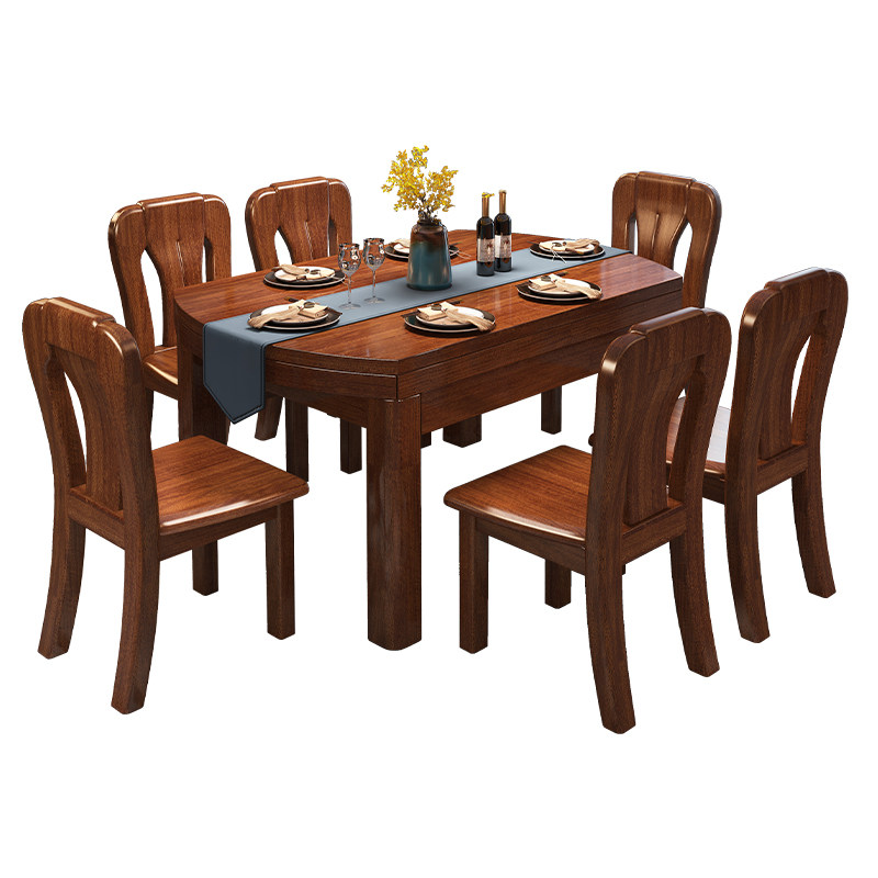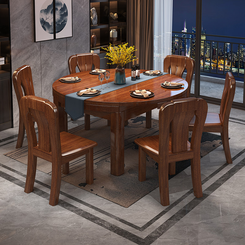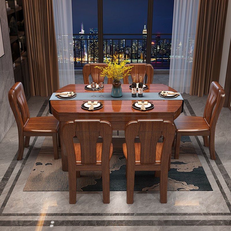 Walnut solid wood dining table home small apartment Chinese-style modern minimalist retractable dining table all solid wood furniture