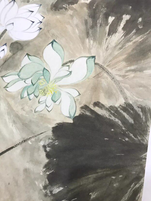 Zhang Daqian < 5 color ho flower picture > Xuan paper high-definition art micro-spray size 50 x 90cm