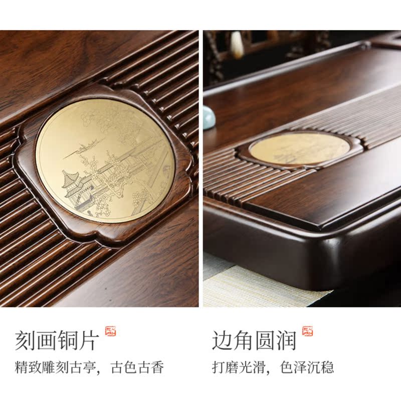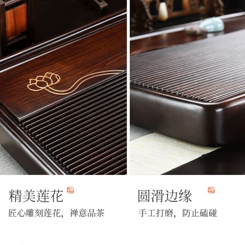 Tianzhuotang ebony solid wood tea tray with kettle One-piece household Kung Fu tea set Tea table tray set Living room