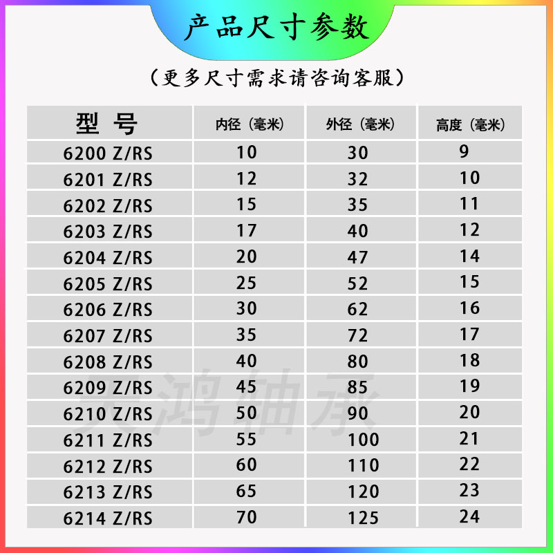 6207 Z iron cover seal 6207 RS cap seal 6208 Z iron cover seal 6208 RS cap seal 6209 Z iron cover seal 62