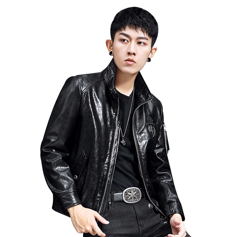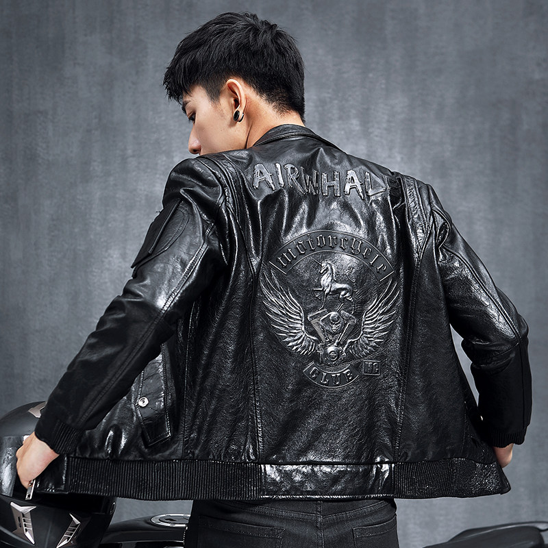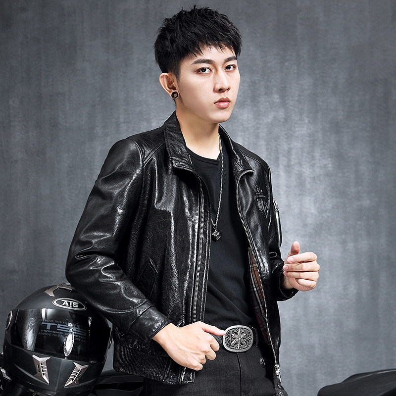 Henning Leather Clothing Men's Leather Locomotive Sheep Leather Jackets Flipping for Men's Harley Oil Wax Retro Coats Tide